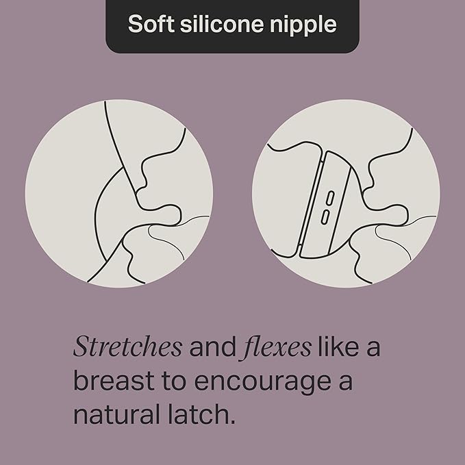 Pace feeding: The soft silicone nipple flexes and stretches like a breast and allows your baby to feed comfortably at their own pace.
