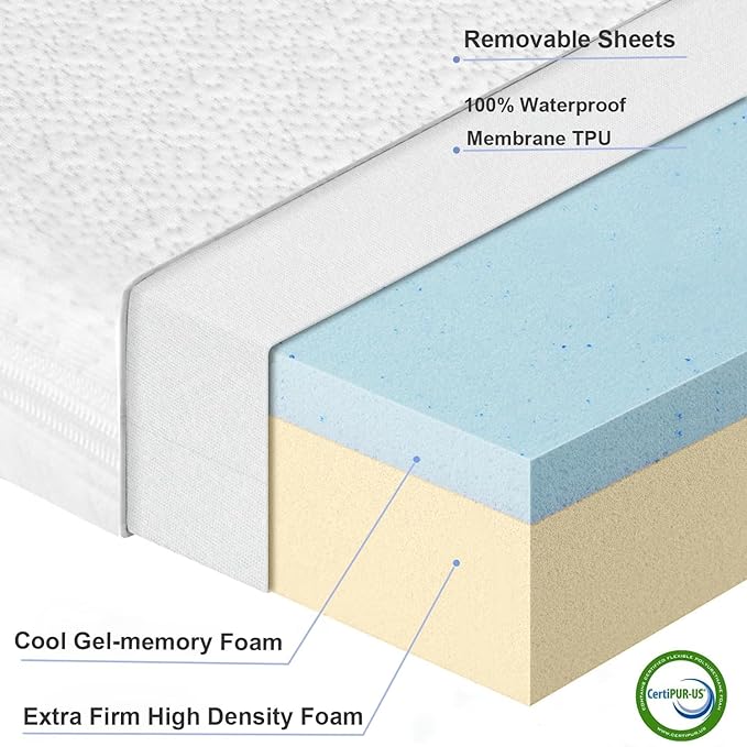 - 【Dual Sided Firmness】Baby bassinet mattress has dual-sided firmness to provide support and comfort for babies at different stages of growth. The softer side features cooling gel memory foam; the firmer side features high-density support foam.