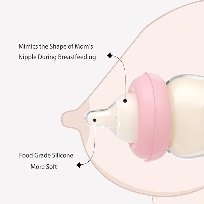 YOHKOH Natural Baby Bottles are made of high quality borosilicate glass, pure and clear without impurities. Paired with a liquid silicone nipple, it can help empty the bottle of air, and the baby can comfortably complete the feeding.