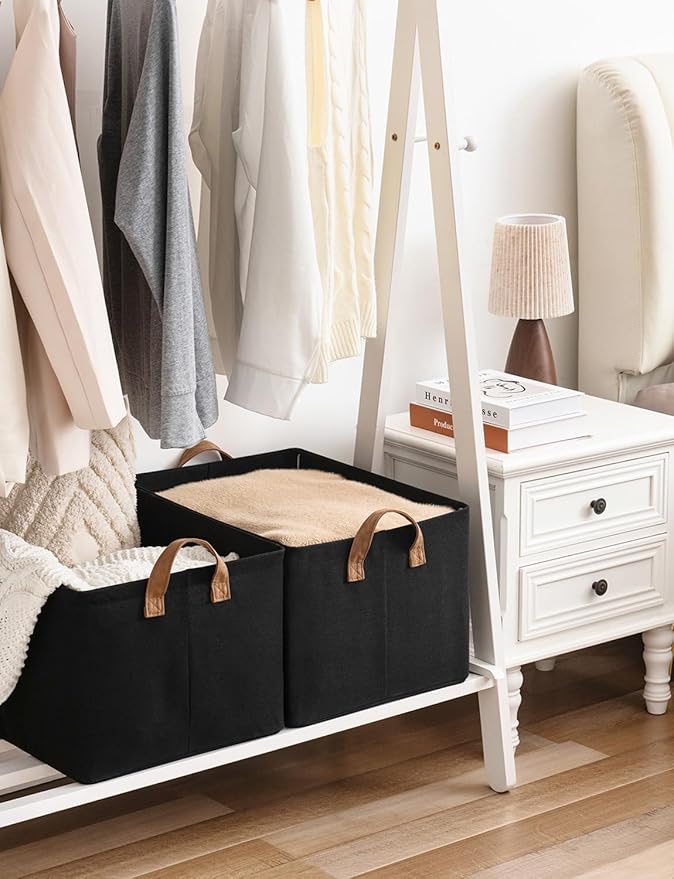 StorageWorks Storage Bins, Fabric Storage Bins for Shelves, Extra Large Storage Baskets with Metal Frame, Closet Baskets and Bins with Handles, Jumbo, Black, 2-Pack