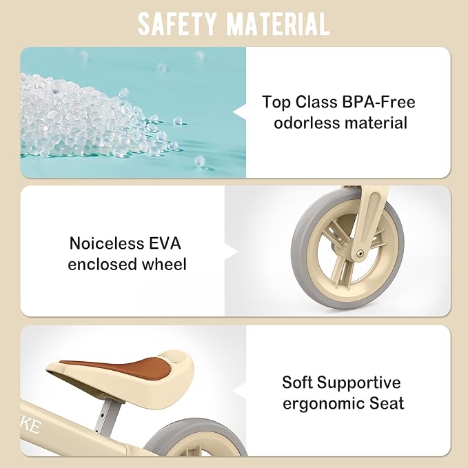 • A few minutes installation: The baby balance bike is easy to assemble and only takes a few minutes to put together.You don’t need to have sophisticated or complicated tools at all.