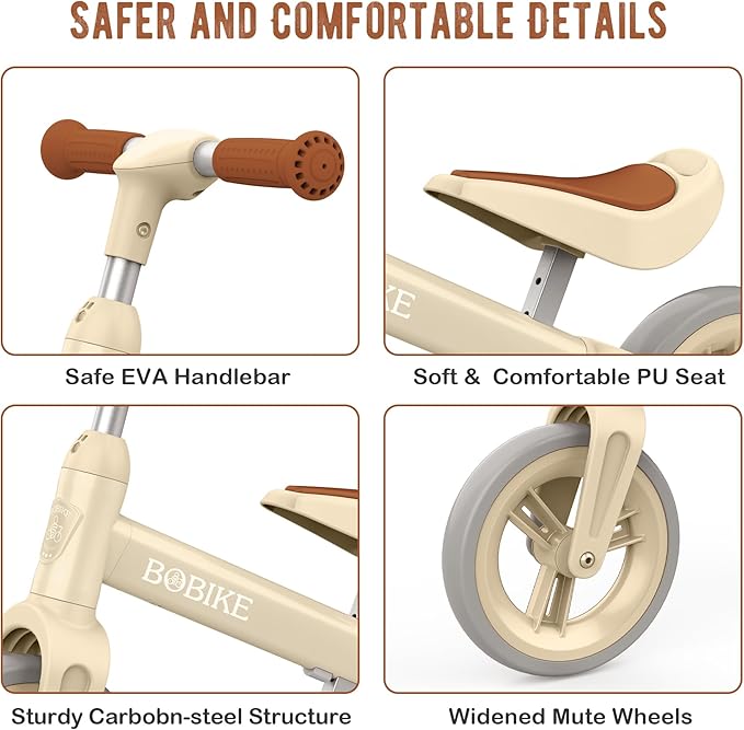 • Used indoors and outdoors: Play time has never been this exciting! With BOBIKE blance bike, your kids can play inside or outside the house (with your guidance). It’s a fun activity for little ones and adults alike.