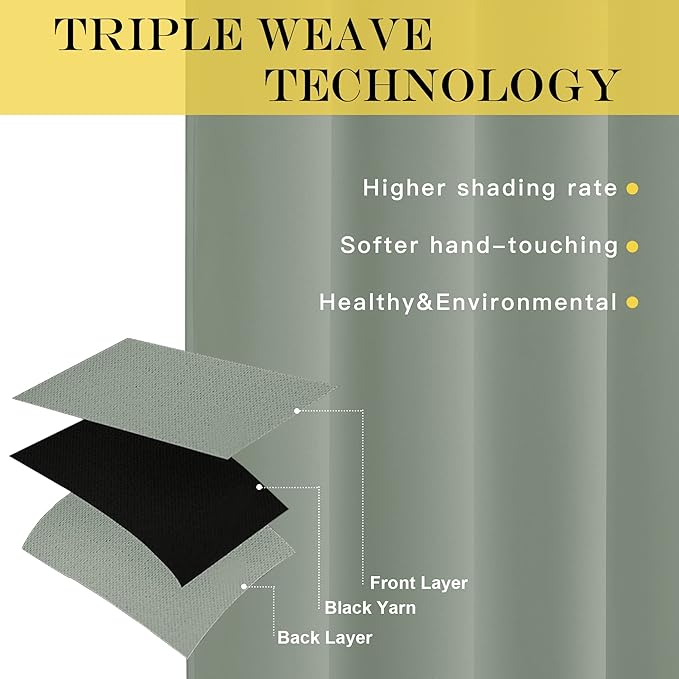 - Amazing Material: Super heavy and soft Blackout Curtain Panels are very upmarket. Besides, 85%-99% light blocking, thermal insulated, soundproof, and energy-efficient. Thread trimmed and wrinkle-free, both sides are the same color.
