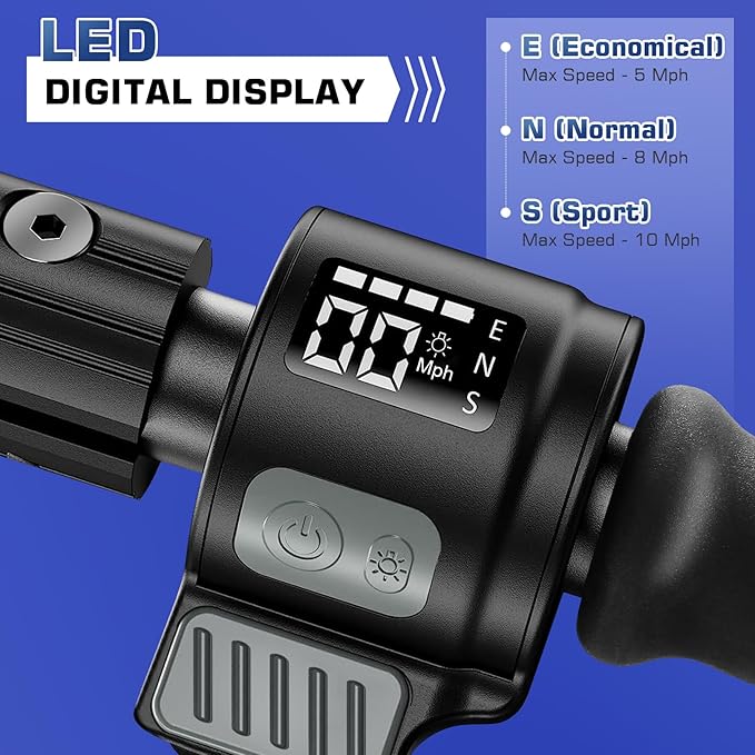 - 【🛴New Generation LED Display】The kids electric scooter E35 is equipped with an LED display that clearly shows riding speed mode, real-time speed, and battery level. 3 speed modes: 5 MPH for beginners and 8 MPH/10 MPH for advanced players (varies depending on usage and environment). This electric scooter for kids ages 8-12 ensures a smooth and controlled ride.