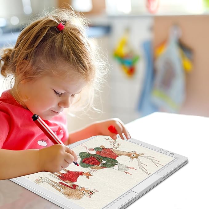 - 【 Ultra-Thin/ Lightweight/ Sturdy Lightboard 】 CE, FCC, ROHS certificated. The ulta-thin tracing lightpad is also light weighted, but it uses with solid material and workmanship to make its base sturdy enough that without deformation.