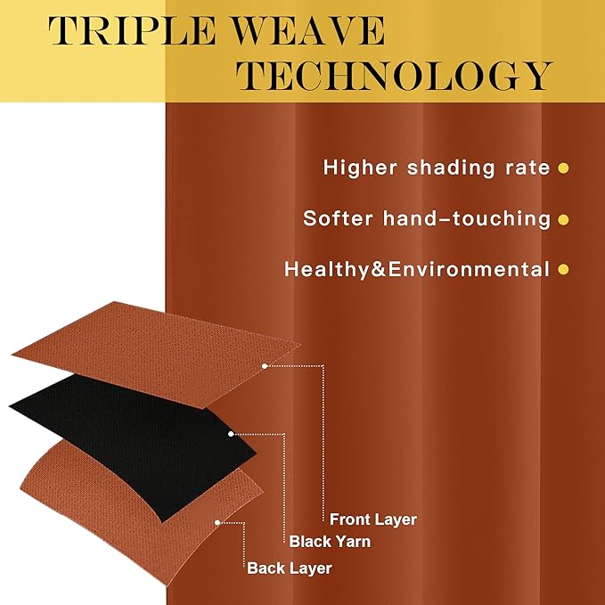 - Amazing Material: Super heavy and soft Blackout Curtain Panels are very upmarket. Besides, 85%-99% light blocking, thermal insulated, soundproof, and energy-efficient. Thread trimmed and wrinkle-free, both sides are the same color.