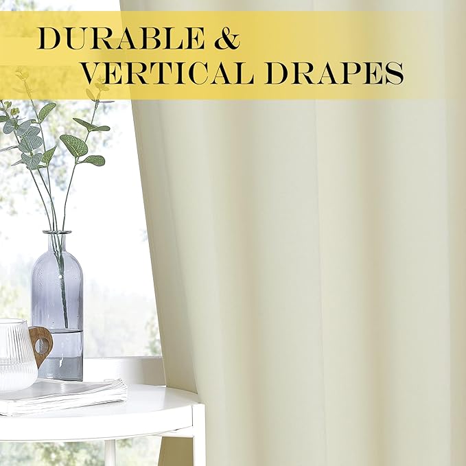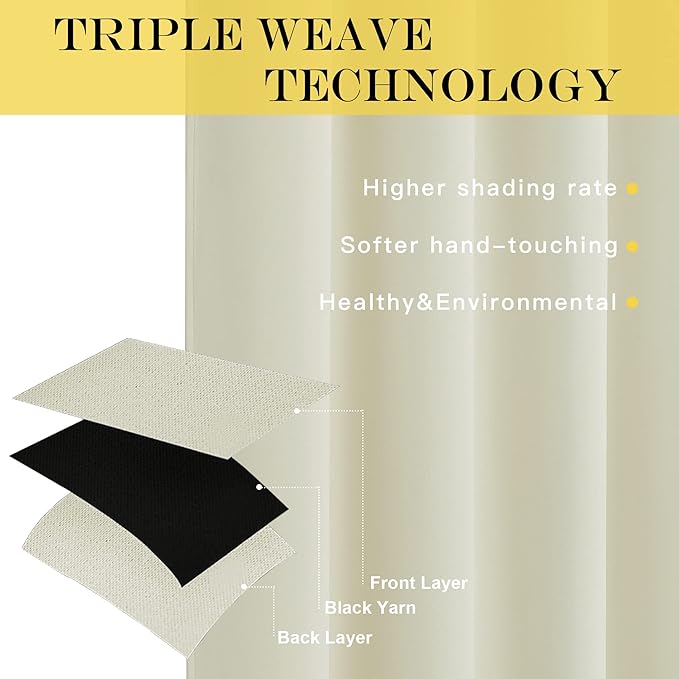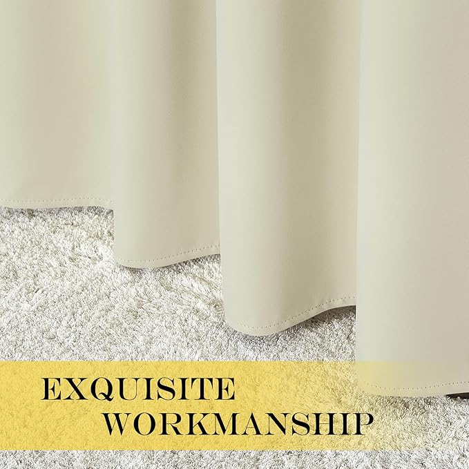 - Amazing Material: Super heavy and soft Blackout Curtain Panels are very upmarket. Besides, 85%-99% light blocking, thermal insulated, soundproof, and energy-efficient. Thread trimmed and wrinkle-free, both sides are the same color.
