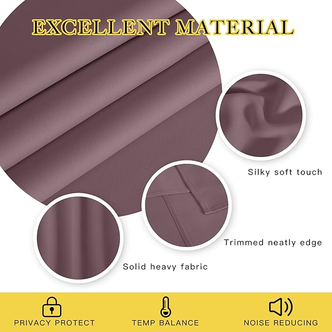 - Amazing Material: Super heavy and soft Blackout Curtain Panels are very upmarket. Besides, 85%-99% light blocking, thermal insulated, soundproof, and energy-efficient. Thread trimmed and wrinkle-free, both sides are the same color.