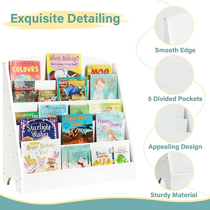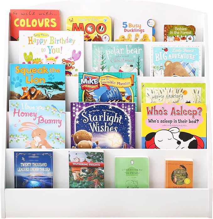 - 【SUITABLE FOR MULTIPLE SCENES】 - The five-tier open display design creates an open environment for children's group activities, encouraging them to read and play together. The book display shelf design is suitable for any room or environment. Perfect for storing books in your child's bedroom, playroom, nursery, or living room.🌈📖