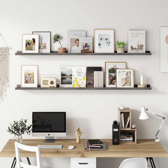 Picture Ledge Shelf, Floating Shelves Set of 2, Solid Pine Wood 72'' Long Large Nursery Book Shelves for Toys Storage, Kids Bookshelf for Living Room Bedroom Decor Books Photo Frames, Grey