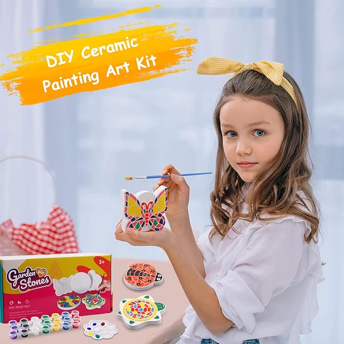 - Safe Material: The PYO stepping stones crafts kit are made of premium quality ceramic, paint is non-toxic and safe for kids. Great for boy & girls ages 3 and up