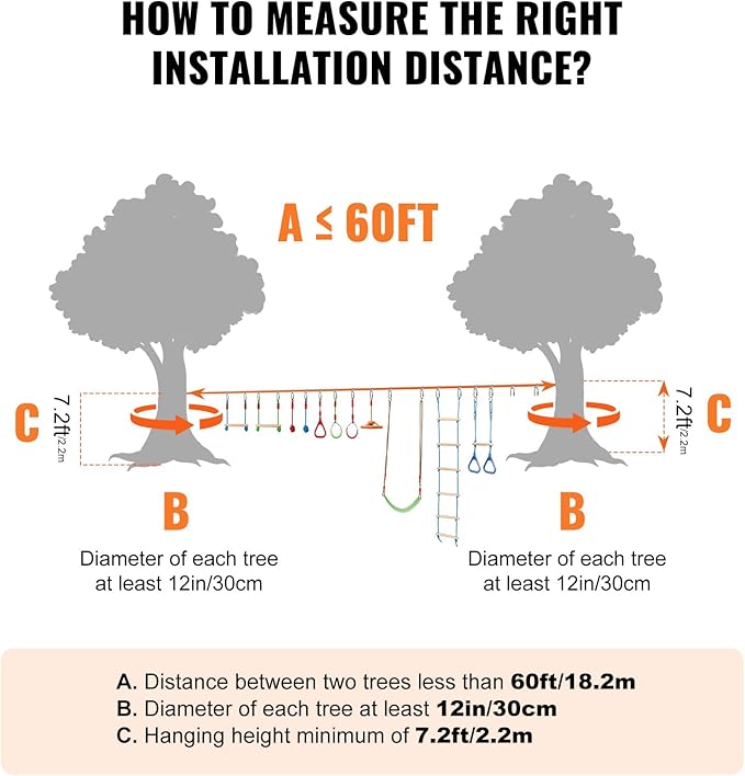 - Quick Installation and Disassembly: The outdoor playset equipment can be assembled in just 5 minutes. There's no need for a wide flat area in your yard; just fix it between two trees or poles 20 to 40 feet apart to start customizing your obstacle challenge game! It's an ideal alternative to traditional playgrounds, offering a convenient and flexible backyard challenge game for children of various ages and skill levels.