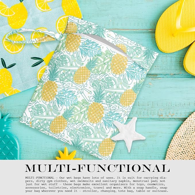 - MULTI-FUNCTIONAL – Our wet bags have lots of uses. It is suit for carrying diapers, dirty gym clothes, wet swimsuits and sanitary napkin, menstrual pad; not just for wet stuff - these bags make excellent organizers for toys, cosmetics, accessories, toiletries, electronics, travel and more. With a snap handle, snap your bag wherever you need it - , changing,tote bag, table or suitcase.