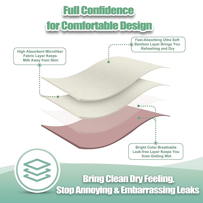 - Absorbent Middle Layer Microfiber provides strong absorbency ensuring no leaking at night; The Outer layer back side TPU lamination can efficiently keep wet away from mama bra or clothes; Nursing pads may not have the leek-free TPU as outer layer; Great for keeping off night time puddles and day time embarrassing leaks