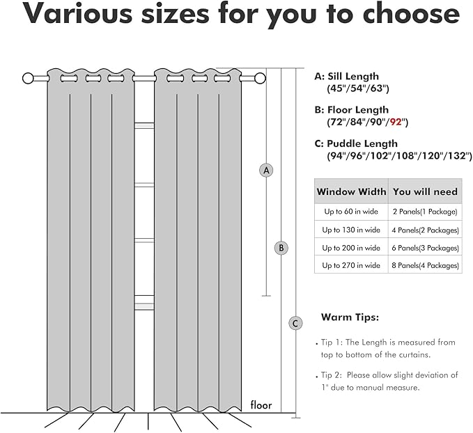 - EASY CARE: If there are wrinkles when opening the packaging. Warm iron or steam iron and tumble dry at low temperatures if necessary. Don't use sharp things scratching curtains. Due to different screen display, the color of actual item may vary slightly from images.