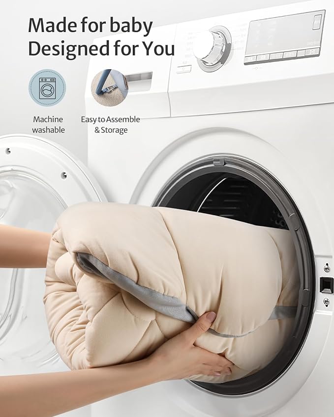 - Easy to Clean and Set Up - The baby activity mat for babies and newborn is machine washable for easy upkeep. Portable and foldable, it requires no tools for quick assembly and disassembly in just one minute, easy to store and transport for indoor and outdoor use. This ensures a clean space for your baby and allows moms to unwind and relax
