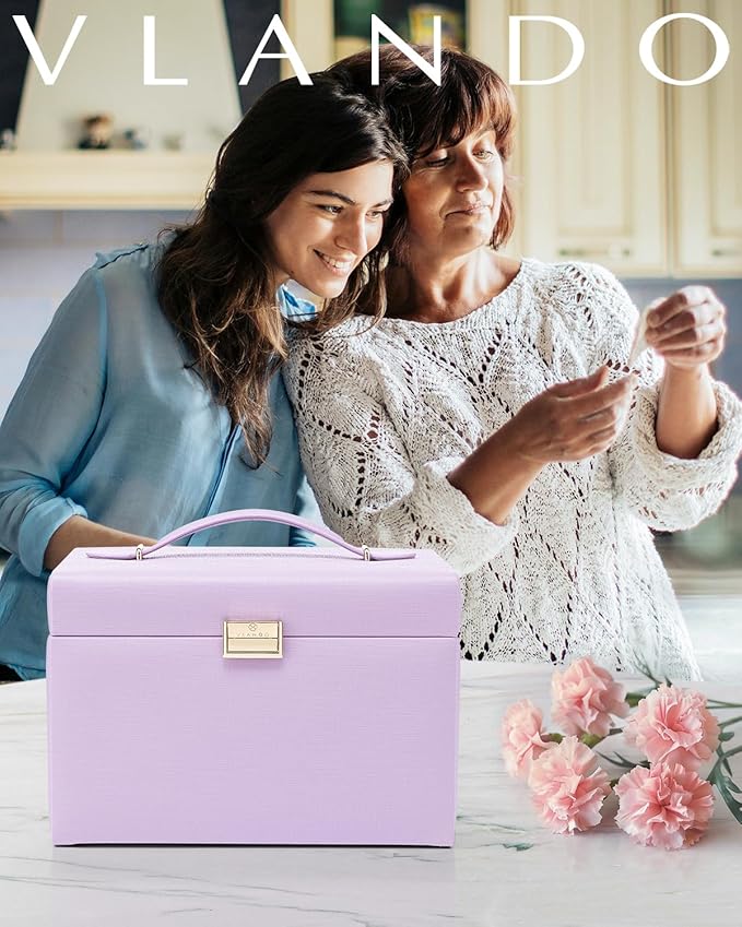 - Crafted with High-Quality Materials - Vlando luxurious synthetic leather jewelry box is resistant to moisture and scratches. The sleek exterior and premium velvet interior lining make it a stunning addition to any room