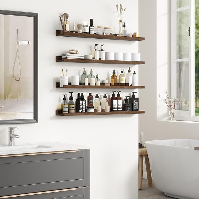 - 【Seamless Installation】Our Picture Ledge Shelves set is designed for easy and simple installation. The package includes all the necessary hardware to get your wood floating shelves up on the wall in no time. Follow the instructions provided, and your wall shelf will be ready to use within minutes.