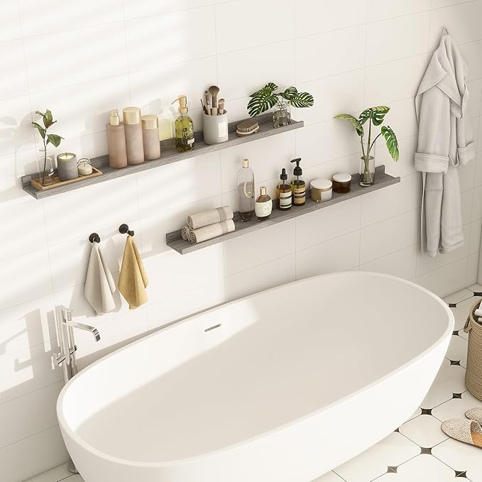 - 【Wall-Mounted Floating Shelves】Transform your living space with these versatile shelves, designed to elegantly showcase home accessories, captivating showpieces, cherished pictures, and lush potted plants. Elevate any room's decor by placing them in unused wall spaces above the fireplace, entryway, vanity, desk, or between windows.