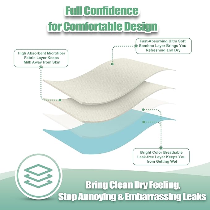 - Absorbent Middle Layer Microfiber provides strong absorbency ensuring no leaking at night; The Outer layer back side TPU lamination can efficiently keep wet away from mama bra or clothes; Nursing pads may not have the leek-free TPU as outer layer; Great for keeping off night time puddles and day time embarrassing leaks