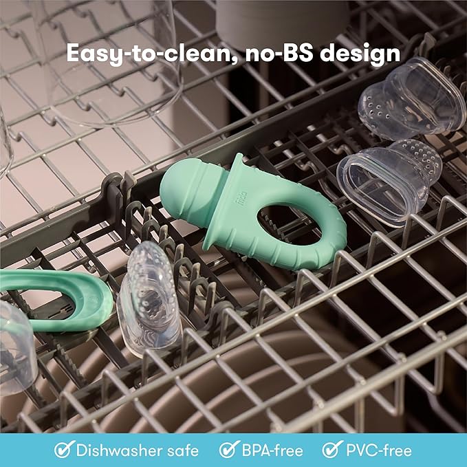 FOOD INTRODUCTION: Fill the silicone feeder with fresh or frozen fruits, vegetables, yogurt, purees, breastmilk, or ice cubes. It's the perfect fruit feeder for babies.