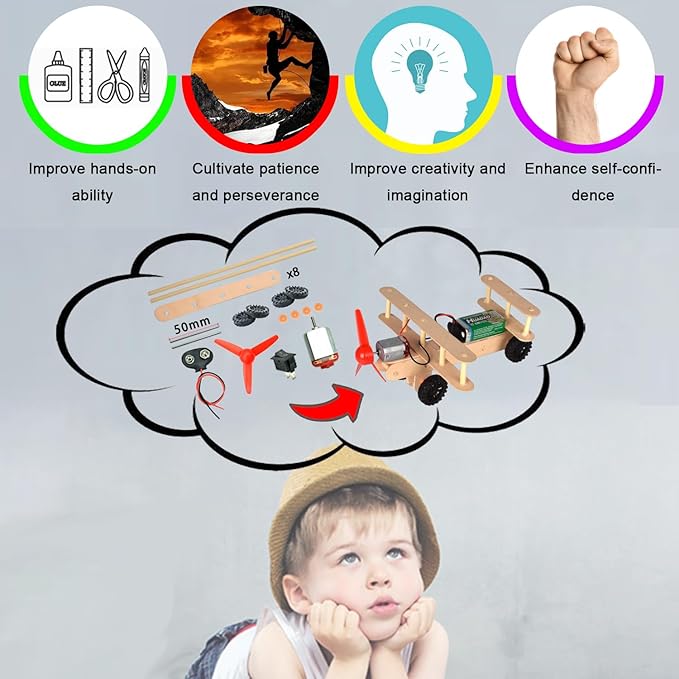 - Benefits of DIY Handicrafts: Keep your children away from electronic products, Improve hands-on ability; Cultivate patience and perseverance; Improve creativity and imagination; Enhance self-confidence; Improve the ability of your children to learn and develop their own skills. They will be very happy when they see the project they assembled move successfully.