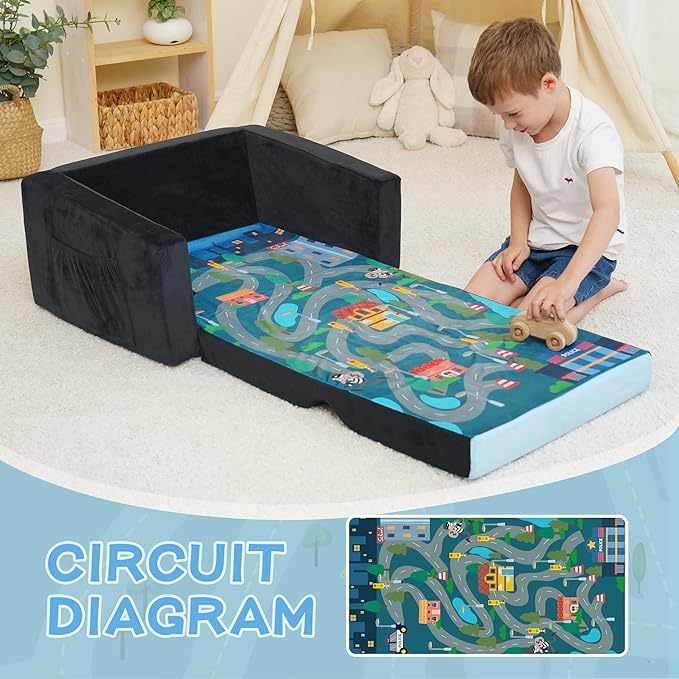 - 2 IN 1 - Perfectly sized sofa bed for kids. Fold-out bottom piece 2 in 1 Flip Open Kids sofa bed, gives childrens the option of lying down flat. Give children to read, play, or folded into a reclining chair and take a nap to provide a more comfortable place.