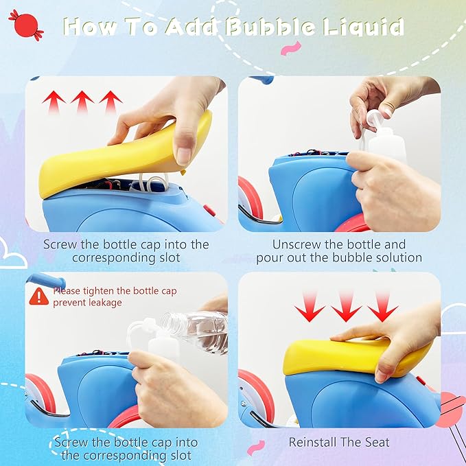 - Easy Installation:The toddler electric bubble bike ride-on is designed with a modular structure, eliminating the need for extra tools during installation. We provide an installation manual in the box to guide you through the process. Kids will quickly enjoy their first balancing toddler car, which helps develop their balance, allows them to enjoy riding, and boosts their confidence.