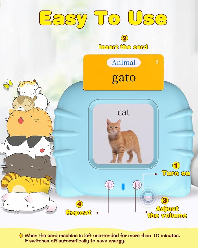 - 【Inspire & Enhance language skills】This talking flash cards design includes vivid colors and fascinating sounds that attract children's attention and promote their interest in learning. Ideal for sensory toys like autism sensory toys, this interactive device provides a unique sensory experience that captivates toddlers' minds and helps improve their speech development.