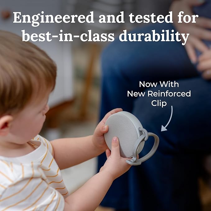 - PORTABLE: This USB-rechargeable sound machine can operate for up to 33 hours on one charge. New reinforced clip features an ultra-wide opening for easy fastening to a stroller, car seat & crib. For proper use, only use the USB cable included.