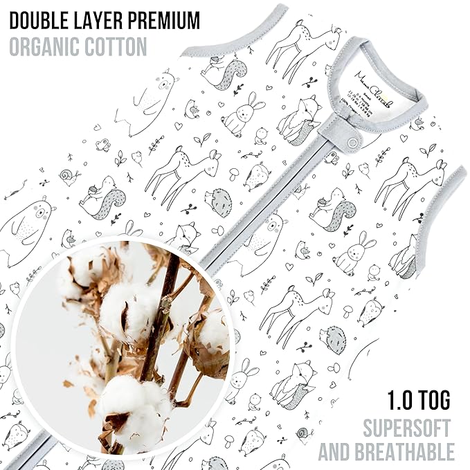 • 【DOUBLE LAYER 1.0 TOG 100% Organic Cotton】— This Baby Sleeping Bag is made of double layer premium organic cotton with a TOG rating of 1.0, which is most suitable for moderate seasons or climates, can help your baby get a peaceful, long sleep year-round - being not too hot or cold. The organic cotton interlock minimizes the risk of overheating and keeps your baby warm and comfortable.