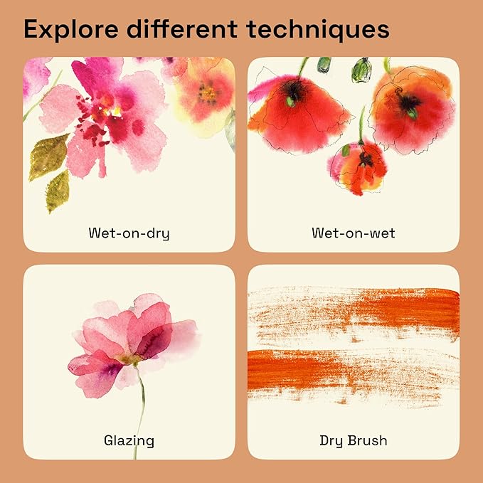 - Versatile Metallic Application Techniques: Our metallic watercolors are designed for flexible use, allowing for smooth flat washes and easy layering. The metallic paints blend seamlessly and do not leave hard edges when dry, enabling a range of professional techniques.