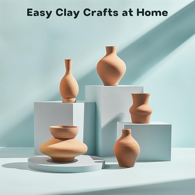 - Complete Pottery Kit: This kit includes a pottery wheel, power adapter, 8 sculpting tools, 2 paint brushes, 3 packs of air-dry clay, and 12 vibrant paints. Ideal for beginners and kids starting their pottery adventure