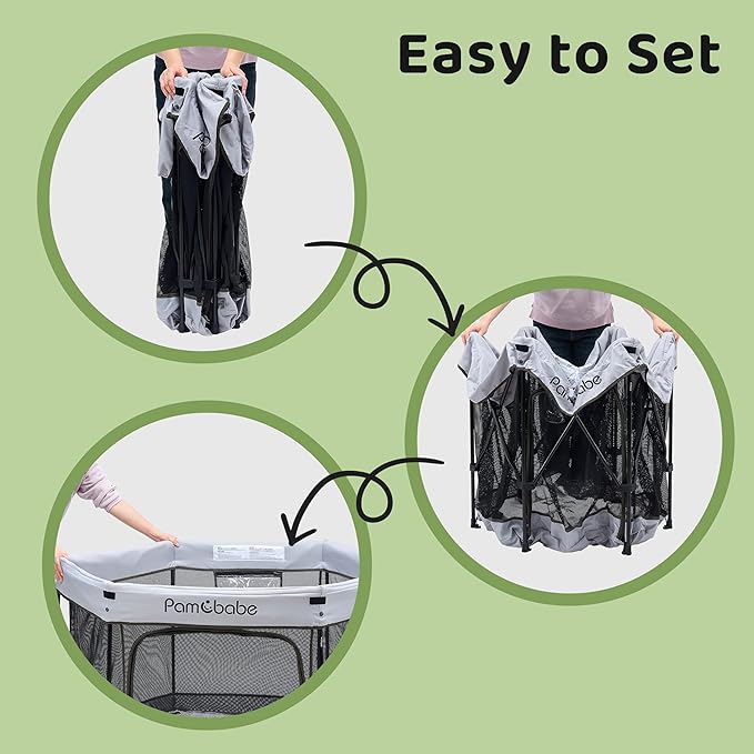 SAFETY & BREATHABLE: The baby playpen has a sturdy hexagonal frame, and breathable clear mesh walls.