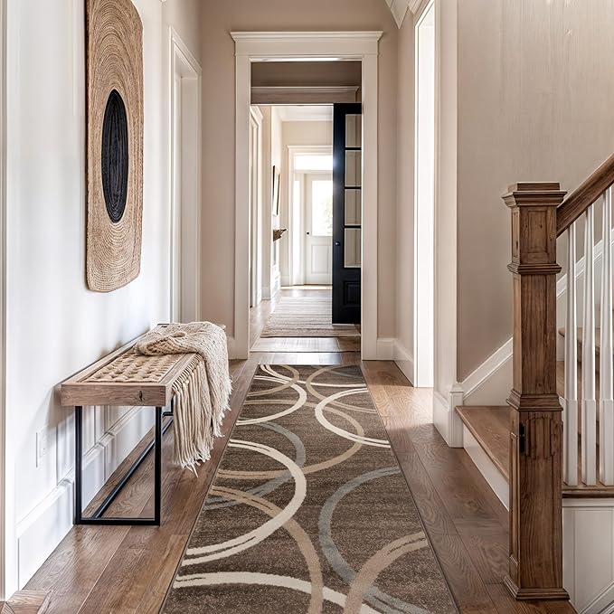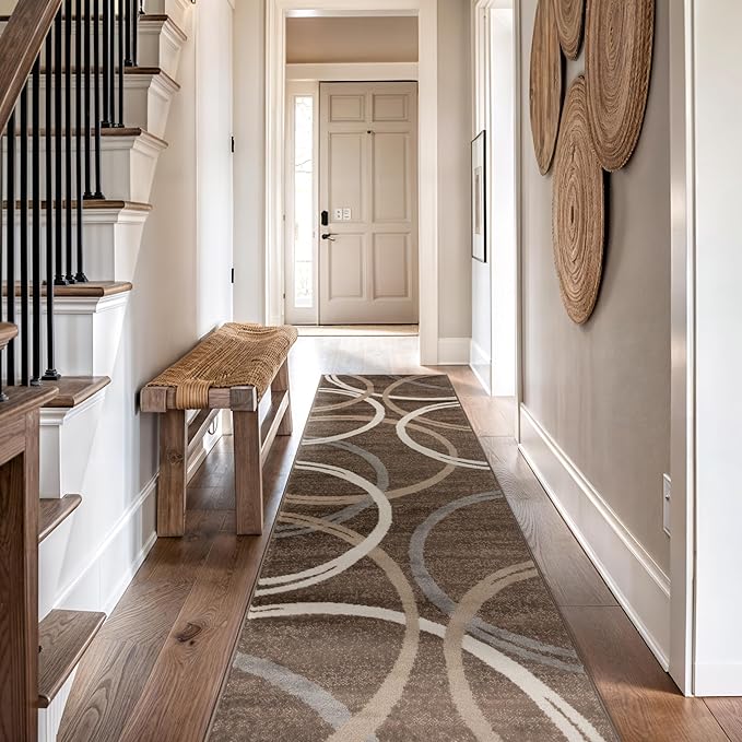 Rugshop Modern Wavy Circles Design Runner Rug 2'7" x 12' Brown