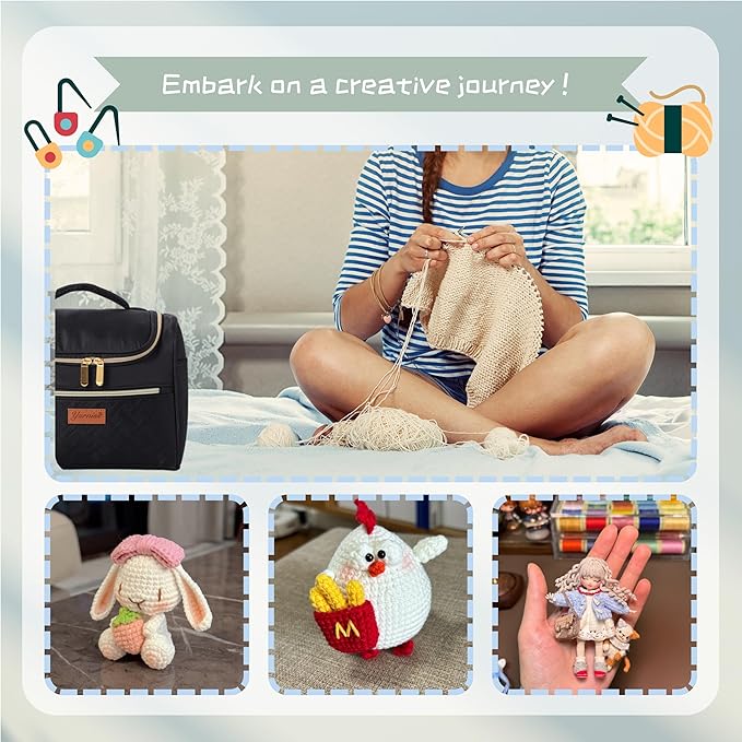 - 【Multifunctional Crochet Storage Bag】This ideal starter pack for kids comes with a large capacity bag to hold all your hooks, crochet supplies and accessories, keeping them organized and avoiding loss, this bag for crochet storage is easy to carry and perfect for storage and travel.