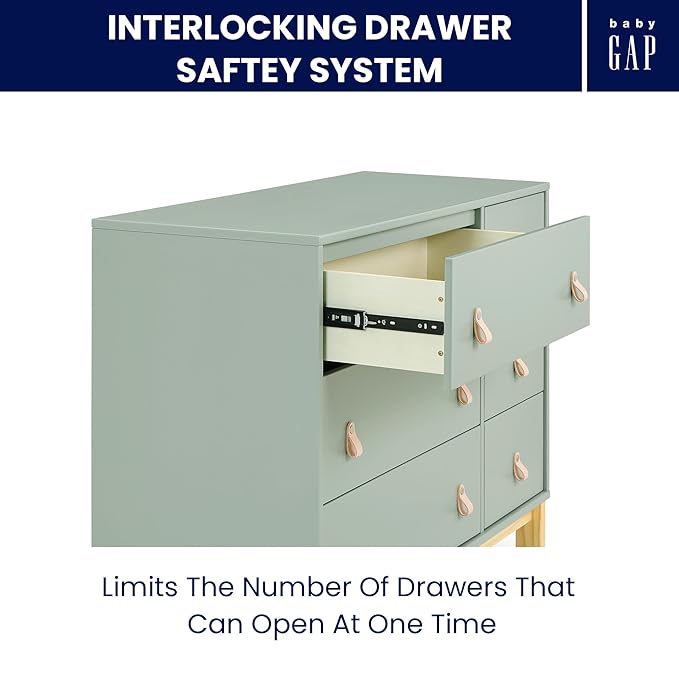 Delta Children babyGap Legacy 6 Drawer Dresser with Leather Pulls and Interlocking Drawers Greenguard Gold Certified, Sage Green w/Natural