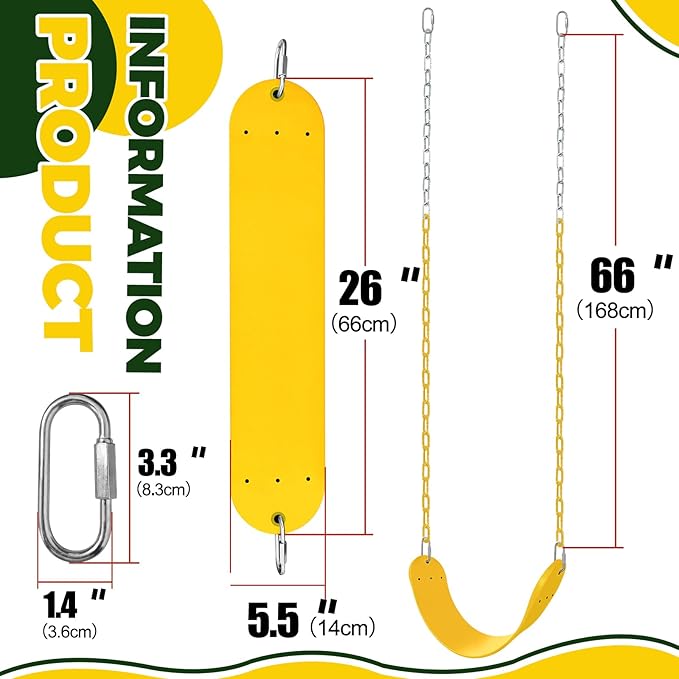 - ♥Easy to use: It is easy to connect the swinging hanger. Chains and locks are included. These swings can be used as a replacement for the swing seat of a swing set.
