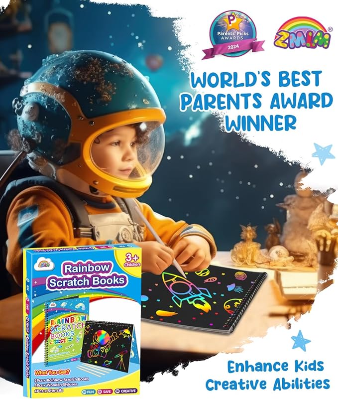 - 6. Spark Imagination with Vibrant Colors: Our children's rainbow scratch paper is a burst of creativity waiting to happen! Perfect for kids aged 3 and up, it's an immersive experience in a world of vivid hues and endless artistic possibilities