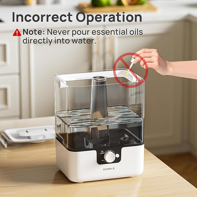 - Perfect Baby Humidifiers for Bedroom : The cool mist humidifiers for home has a knob to adjust the mist output and can run at a minimum of 26dB at the lowest setting, so enjoy a peaceful nightβs rest. Soft blue night lights can also be turned on or off. CHIVALZ humidifiers for bedroom is an ideal choice for bedrooms, large rooms, baby nursery, offices, indoor plant humidifiers, and more. It is recommended to place the humidifier 16inch away from non waterproof walls, appliances, etc. when using it