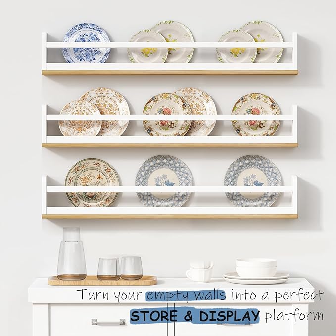 - [Perfect Wall Bookshelf for Kids Room] Without taking up any floor space, mount these floating kids bookshelves on your nursery wall or kids bedroom. Kids can easily place picture books, stuffed animals, and toys on wall shelving, where they'll be off the floor and easy to reach by themselves.