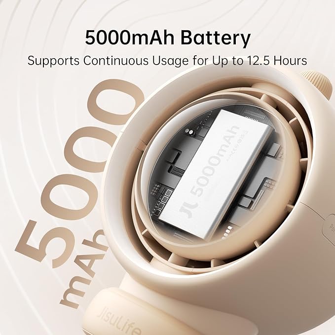 JISULIFE Stroller Fan Baby Large, Safe Bladeless for Crib, Desk, Portable Battery Rechargeable Cooling Fan with Air Turbo Tech, Night Light, Food-Grade Gift for Mom/Dad/Friend - Brown