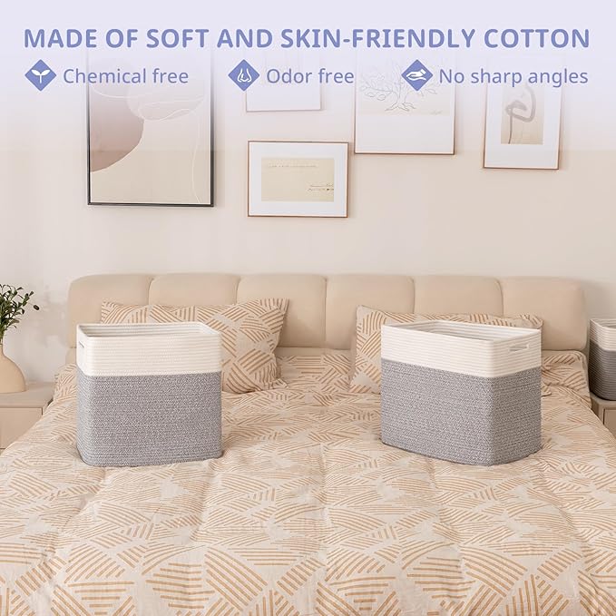 - 100% Cotton Rope Storage Baskets:OIAHOMY storage bins are made of high-quality natural cotton, chemical free and safe for kids and pets. It will not scratch your furniture and floor and more firm than plastic basket