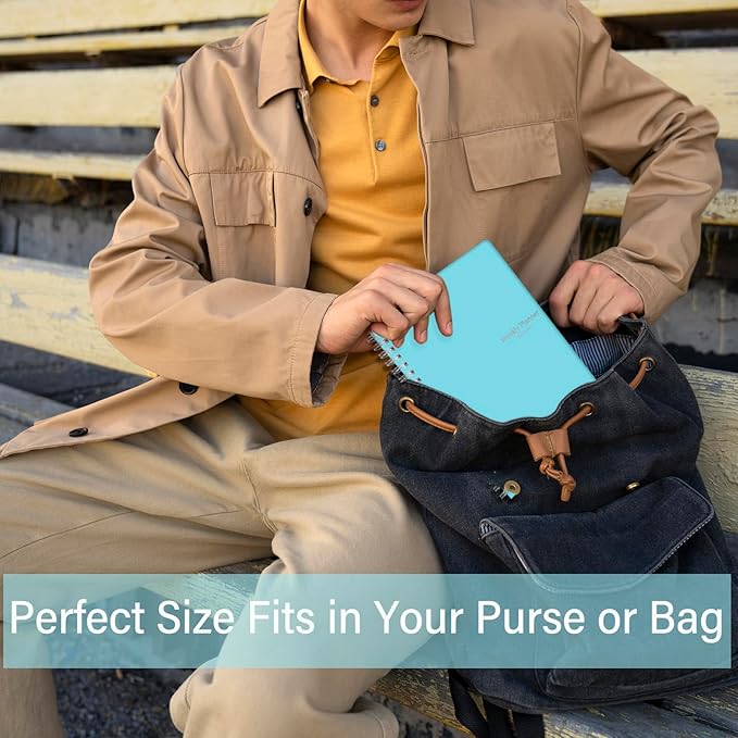 - ✍ELEGANT & PORTABLE DESIGN: Featuring a sleek black PVC cover with glitter printing and a sturdy silver coil, the undated weekly planner combines simplicity and fashion. Its compact size of 5.7'' x 8'' ensures easy portability for daily use at work, home, school, or during travel—a perfect gift for any occasion.