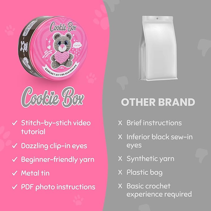 - đź’– Our Promise to You: The entire Cookie Box team is committed to making crochet truly beginner-friendly, frustration-free, and rewarding. Every kit is designed for the best learning experience, combining high-quality materials, clear guidance, and real support. Thank you for being part of the Cookie Box crochet community!