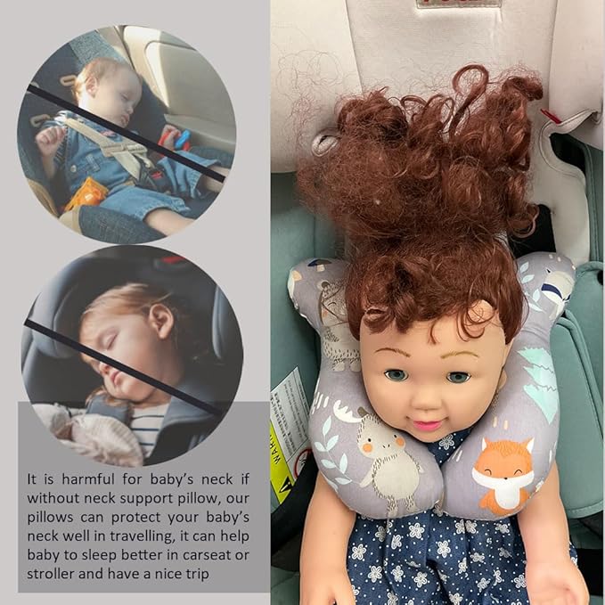 👶Material: Our baby travel pillow for car seat is made of cotton fabric, the filling is PP cotton, soft and comfortable
