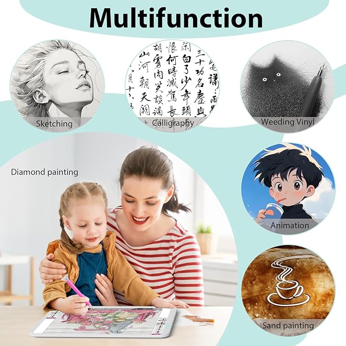 - <𝗙𝗮𝘀𝗵𝗶𝗼𝗻&𝗕𝗶𝗴 𝗔𝟯>: The diamond art light pad boasts a chic design in white and mint green, radiating modernity and sophistication, enhancing the visual appeal of the device while infusing a sense of freshness and sophistication into any workspace.And the light pad is designed to be highly portable with L16.2''×W12.2''×H0.3''.The visual working area is 14.8''x10.6'',which is much bigger than A4 size,perfect for diamond painting and drawing.lt's a perfect gift for Christmas, birthdays or any other festivals.