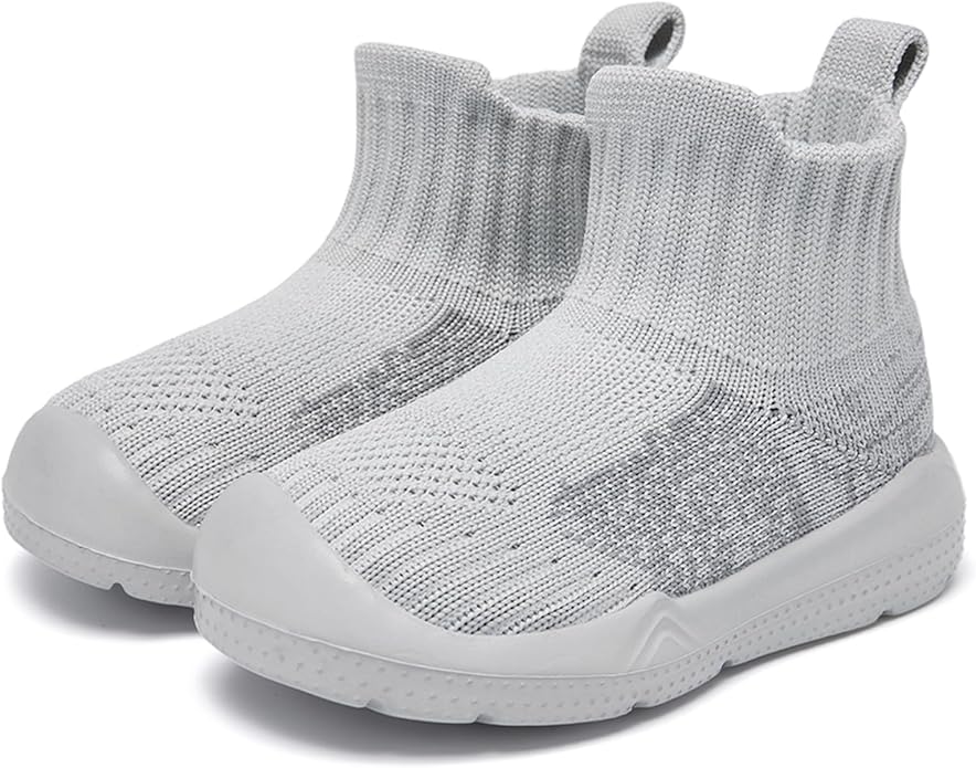 • Friendly Sock-like Upper: Sock-like stretchy textile construction upper hugs the foot to keep them comfortable and flexible when babies are on the move. Baby sock shoes made of soft fabric knit are also friendly to the skin, healthy, and very safe for infant babies.
