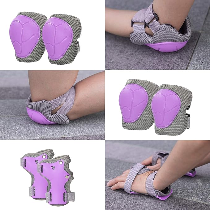 - 7PCS Kids Helmet and Protective Gear Set - Includes 1 adjustable helmet, 2 knee pads, 2 elbow pads, and 2 wrist guards—everything your child needs for safe riding. Built with a tough, scratch-resistant PP shell and cushioned interiors for long-lasting protection and comfort.