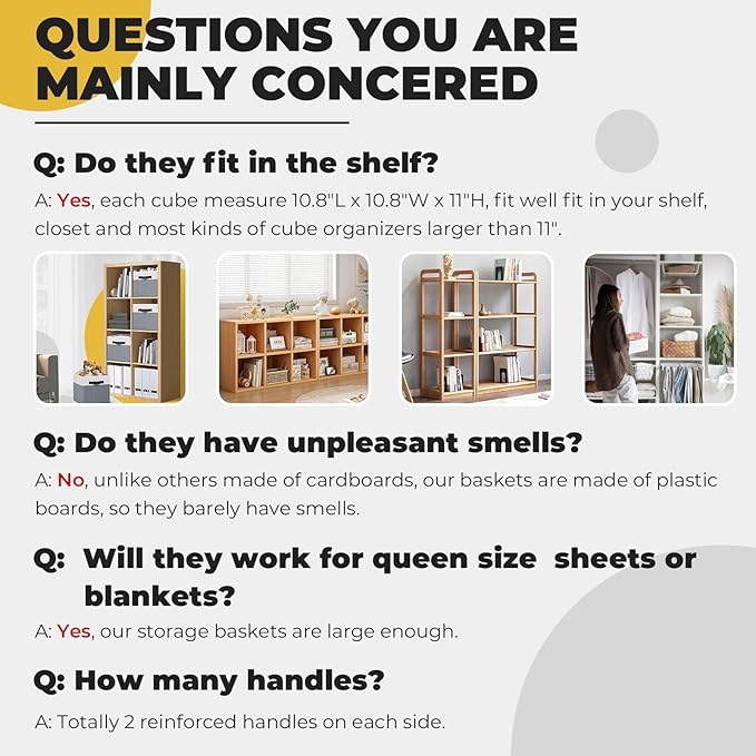 - 【𝙉𝙊 𝙈𝙊𝙍𝙀 𝙒𝙊𝙍𝙍𝙄𝙀𝙎 𝘼𝙗𝙤𝙪𝙩 𝙌𝙪𝙖𝙡𝙞𝙩𝙮 𝙖𝙣𝙙 𝙎𝙢𝙚𝙡𝙡𝙨】 Our cube storage bins are made of tear-resistant fabric with odorless plastic panels, ensuring reliable durability and security for baby nursery organization. Each cube basket has two strong handles, capable of holding up to 20 lbs heavy supplies.